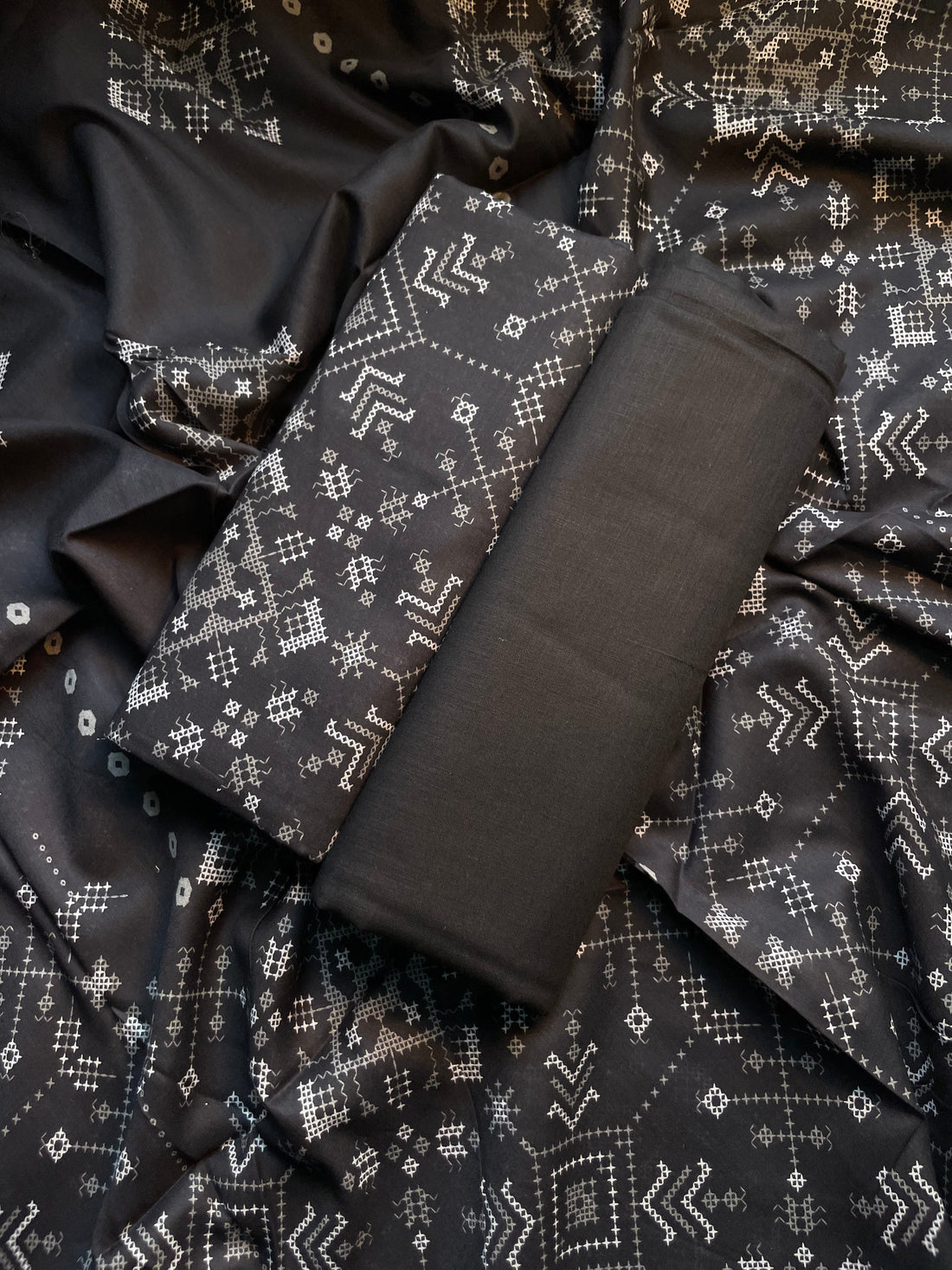3 Piece Printed Lawn Suit – Black & White Geometric