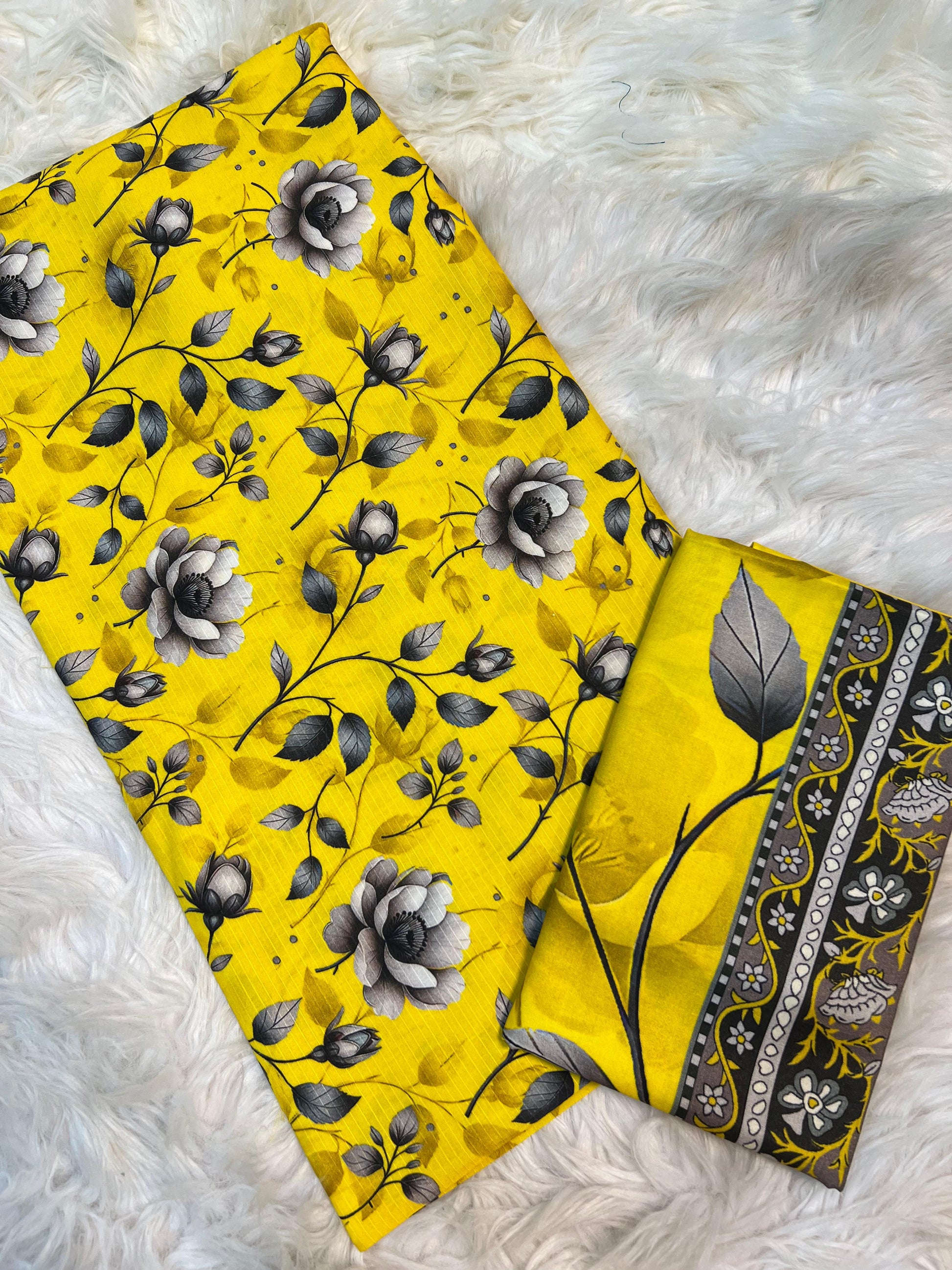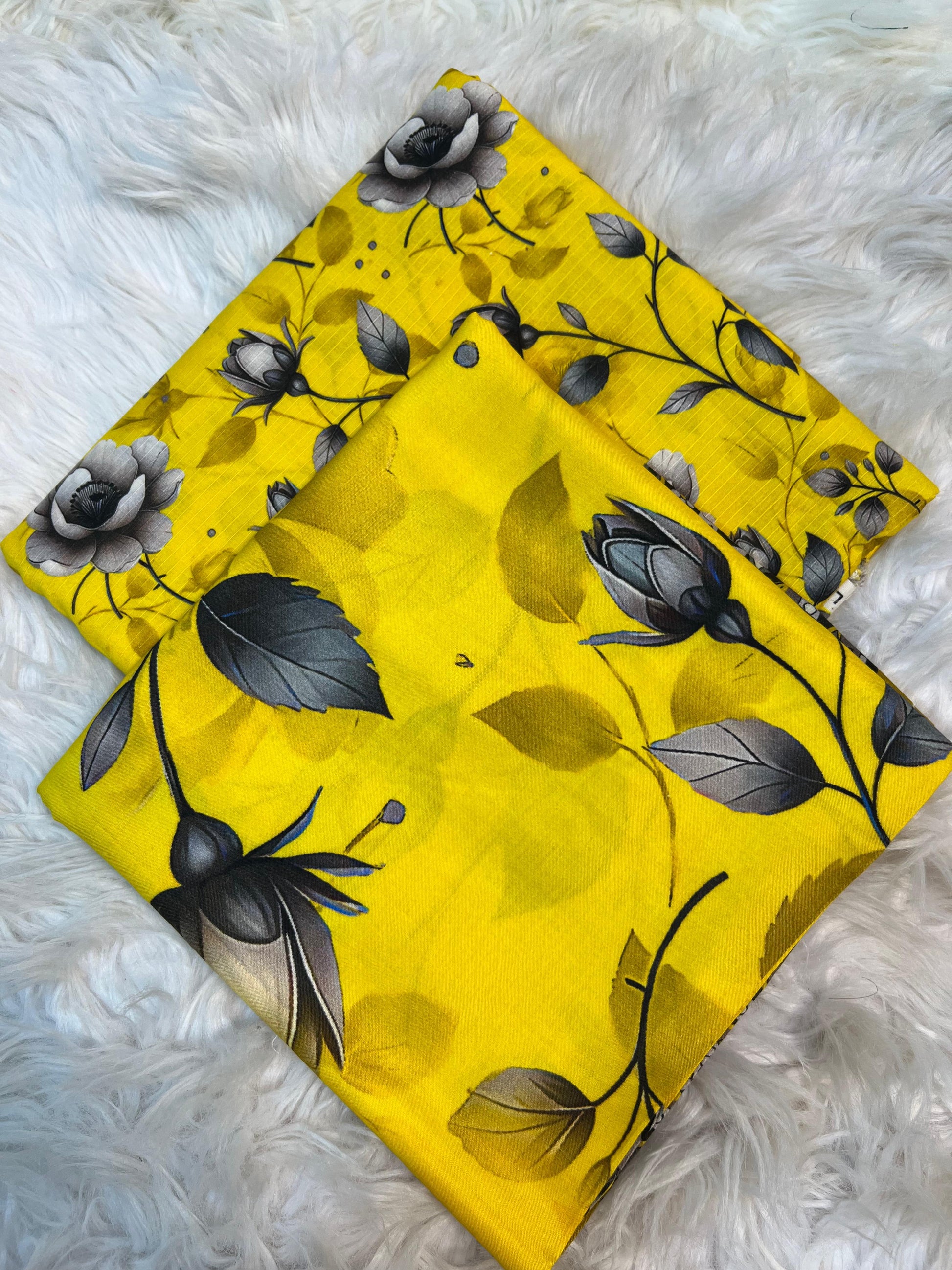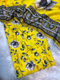 Color: Vibrant Yellow with Black-Grey floral print