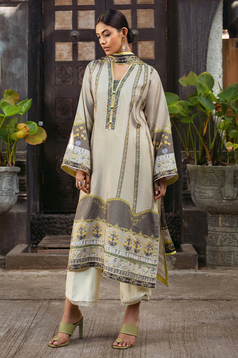 An elegant 3-piece unstitched suit crafted from luxurious Raw Silk. Available in two options — plain with intricate prints or enhanced with delicate hand embellishments for an elevated look. Perfect for festive and formal occasions