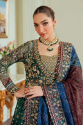 The dupatta mirrors the frock’s luxury, bordered with embroidered velvet, adorned throughout with chatta patti and beads at the edges, and finished with kinaari lace that enhances the ensemble’s elements together.