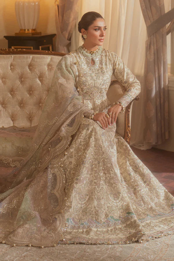 The dupatta has embroidered scalloped edges with embellishments that enhance its opulence.