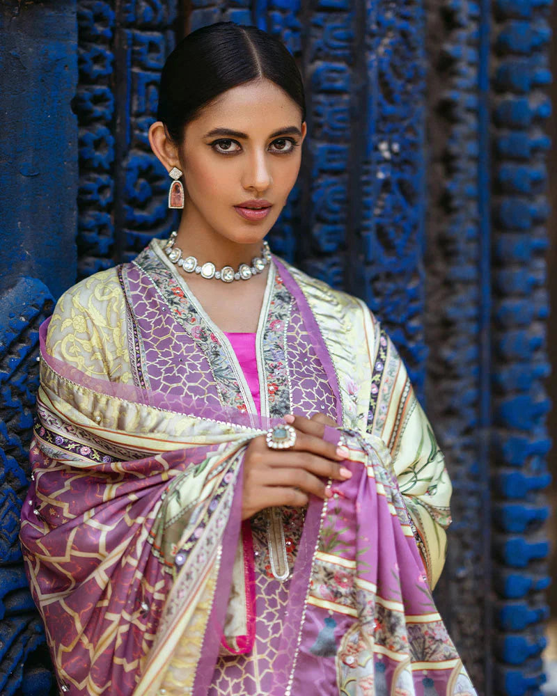 An elegant 3-piece unstitched suit crafted from luxurious Raw Silk. Available in two options — plain with intricate prints or enhanced with delicate hand embellishments for an elevated look. Perfect for festive and formal occasions