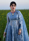 It's a front open organza peshwas. The choli and sleeves are embroidered, and attached with embroidered panels. This peshwas is paired with Korean Raw-silk sharara, which adds a traditional touch. And the dupatta is made of organza with embroidered four side borders, giving it sophistication. This outfit is definitely a head-turner and perfect for any special occasion or event.