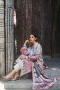 Pewter is an elegant fusion of grey and pink, crafted from sumptuous printed raw silk. This outfit features intricate embellishments that add a touch of glamour, complemented by a graceful silk dupatta.