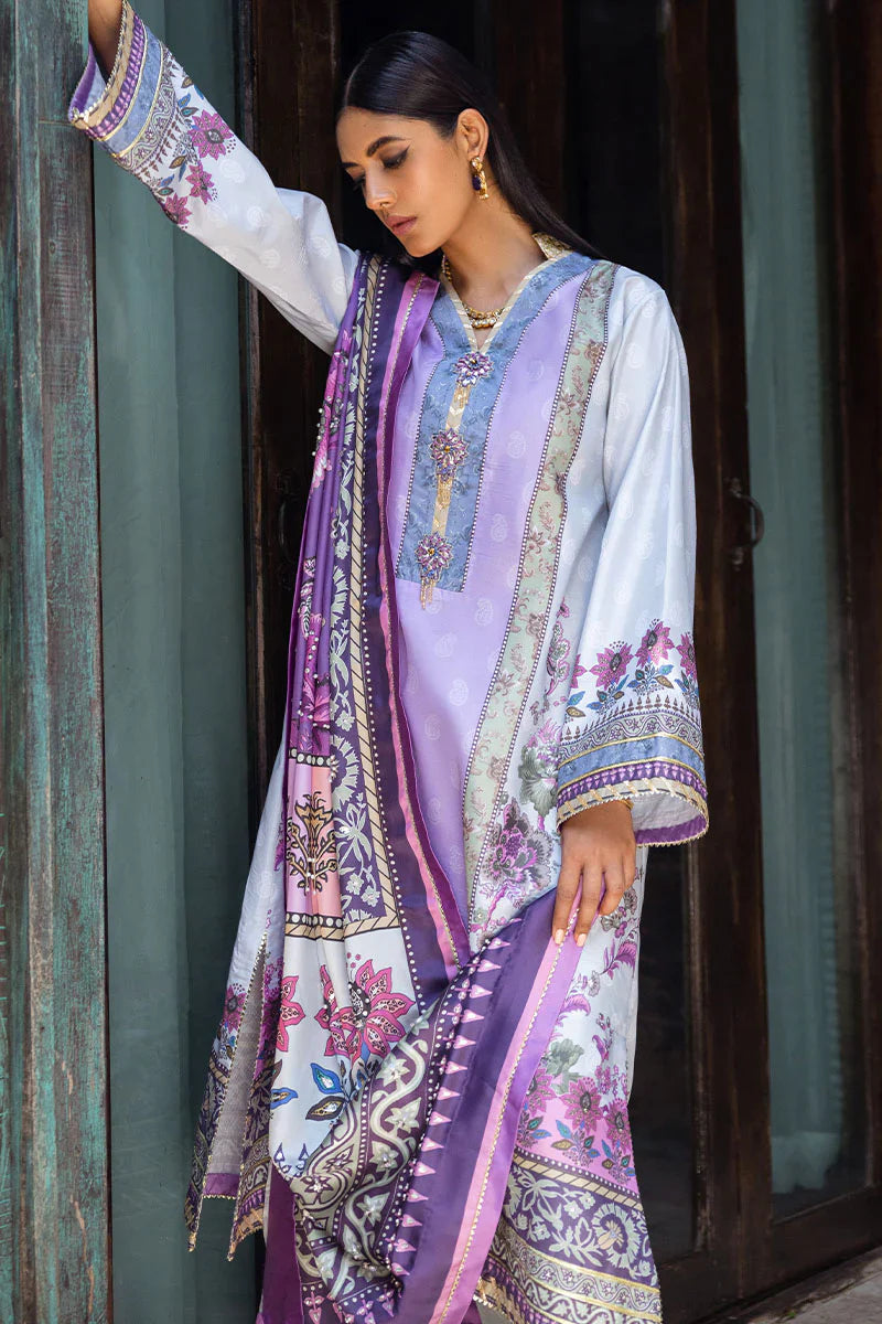 Viola from the Nirvana collection—a masterpiece crafted on luxurious raw silk with delicate embellishments that elevate its charm. The vibrant printed design adds a touch of modern elegance, while the flowing silk dupatta completes the ensemble with effortless grace. Viola is the perfect blend of tradition and sophistication, designed for those who appreciate timeless beauty.